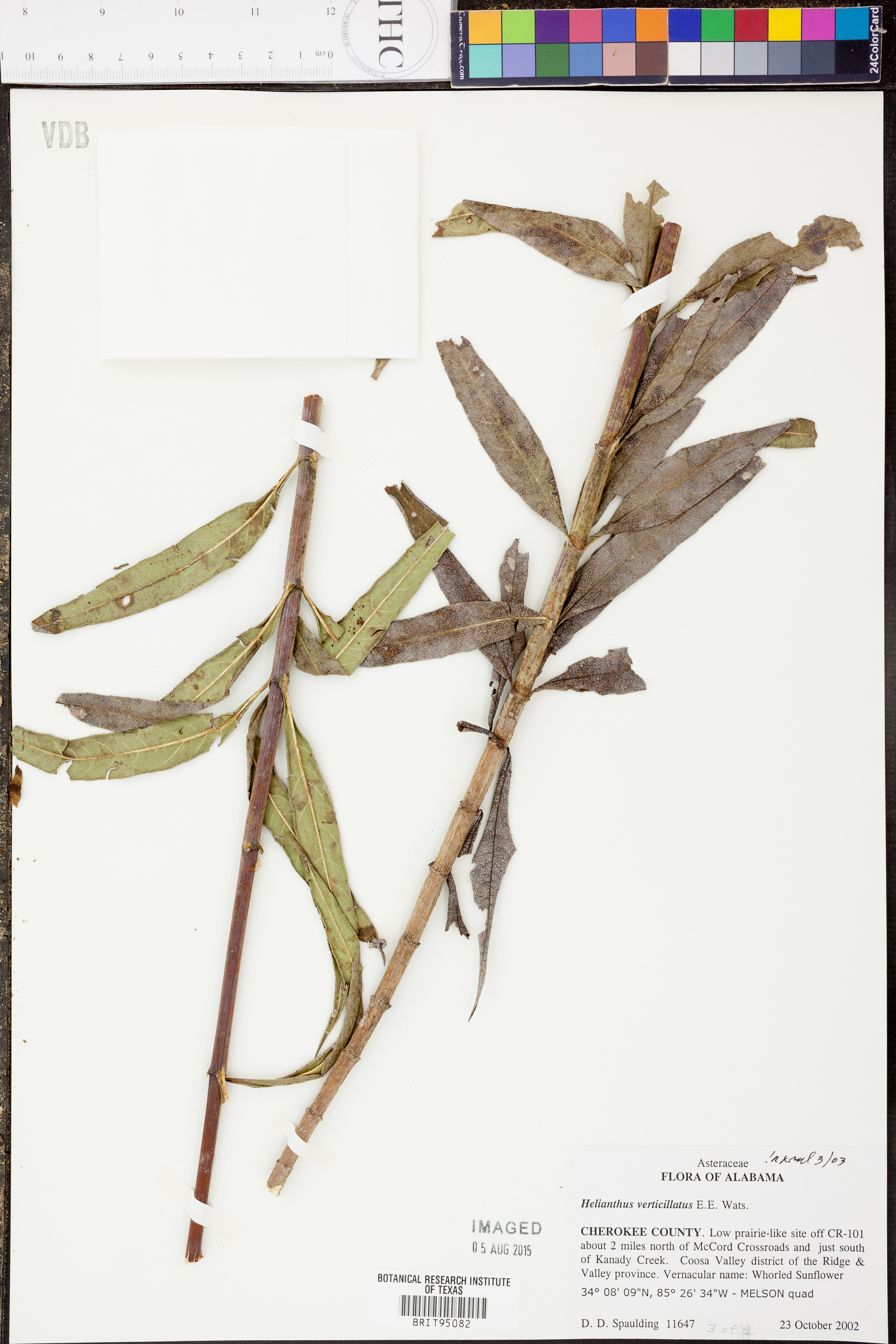 | Herbarium Name Used: | Helianthus verticillatus Small |