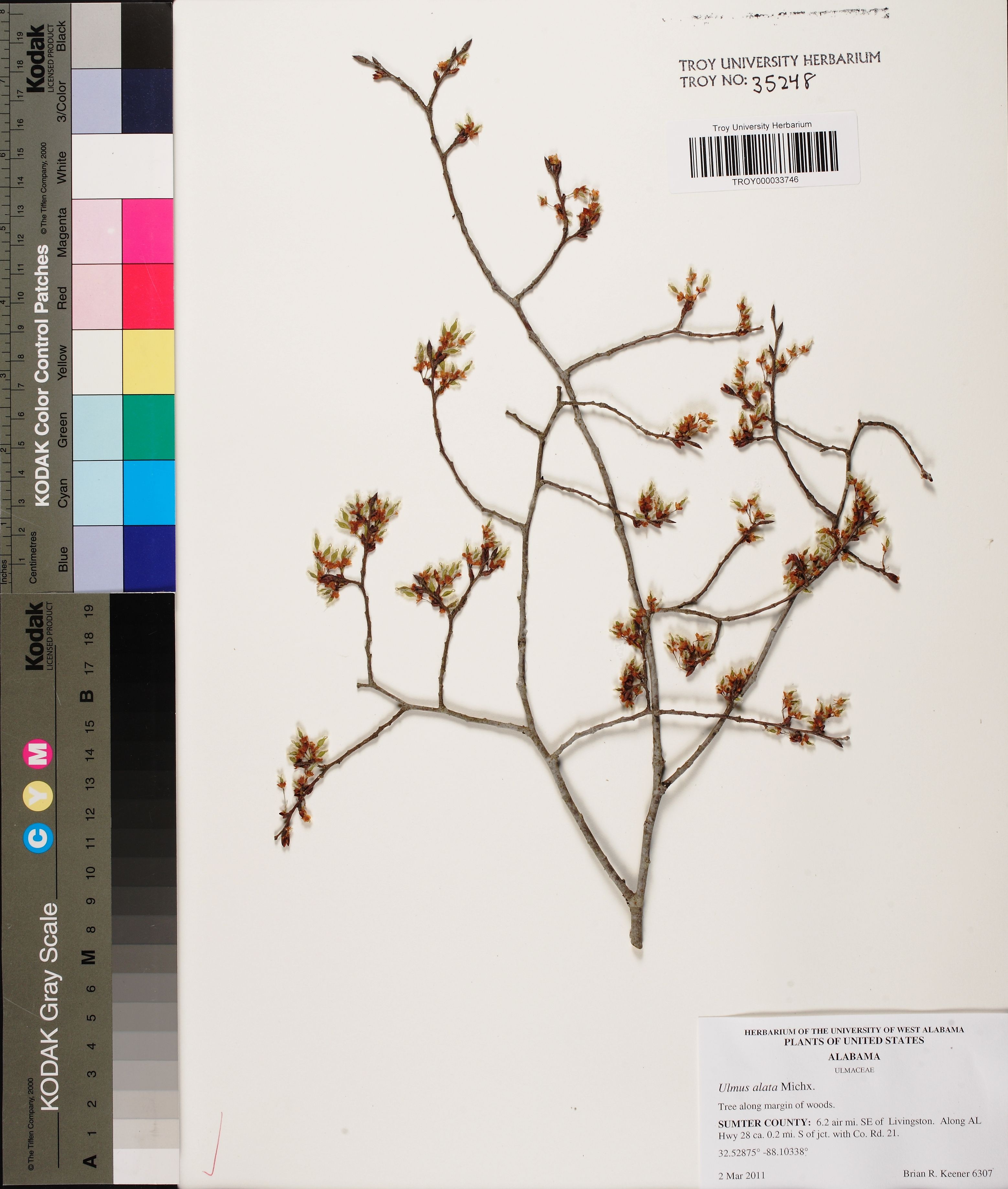 Counties represented by specimen data listed below: