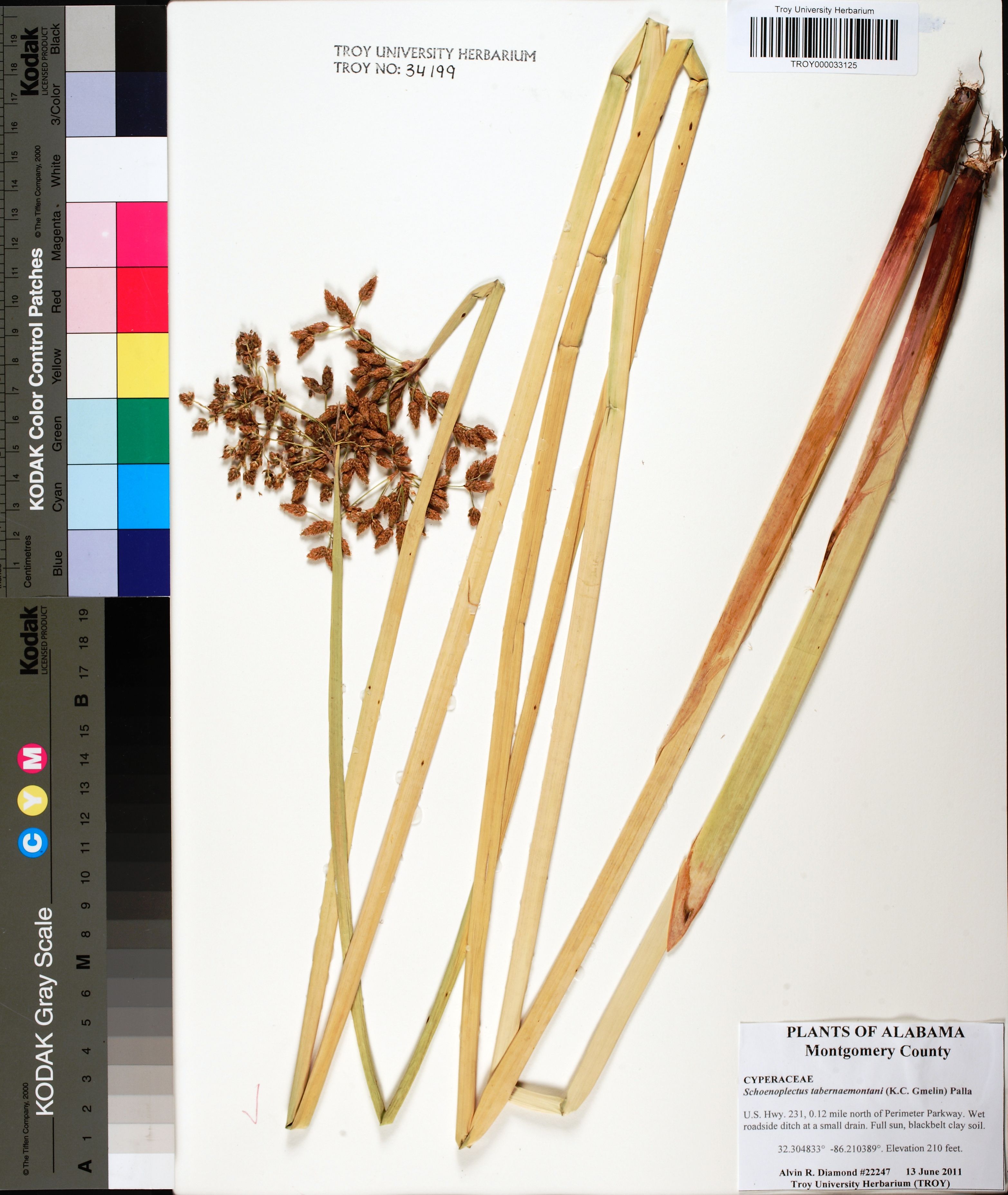 | Scirpus lacustris Linnaeus, var. tabernaemontani (C. C. Gmelin) Döll, Rhein. Fl. 165. 1843. | Scirpus tabernaemontani C. C. Gmelin 1805. | |