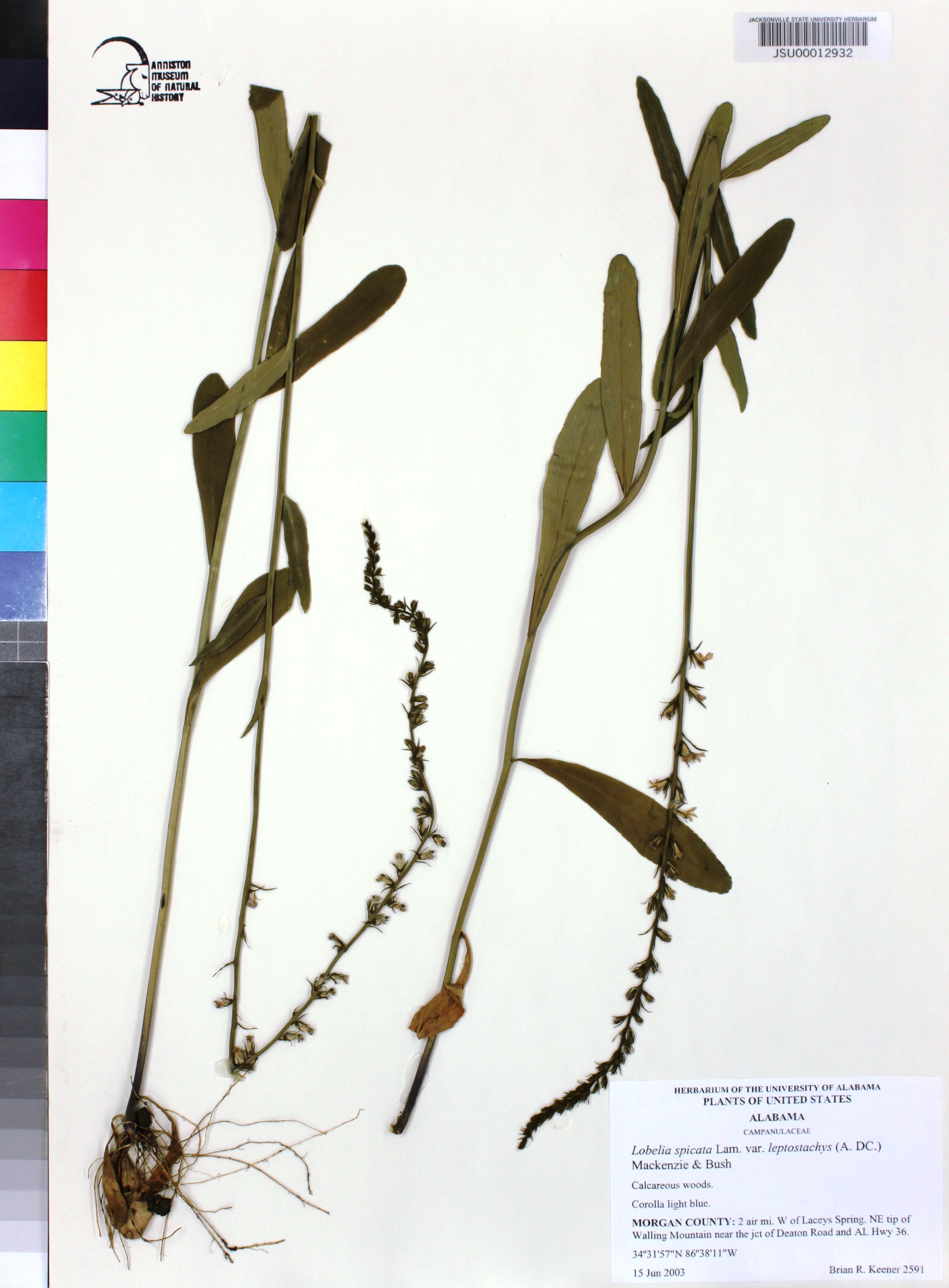 | Herbarium Name Used: | Lobelia spicata Lam. var. leptostachys (A. DC.) Mackenzie & Bush |