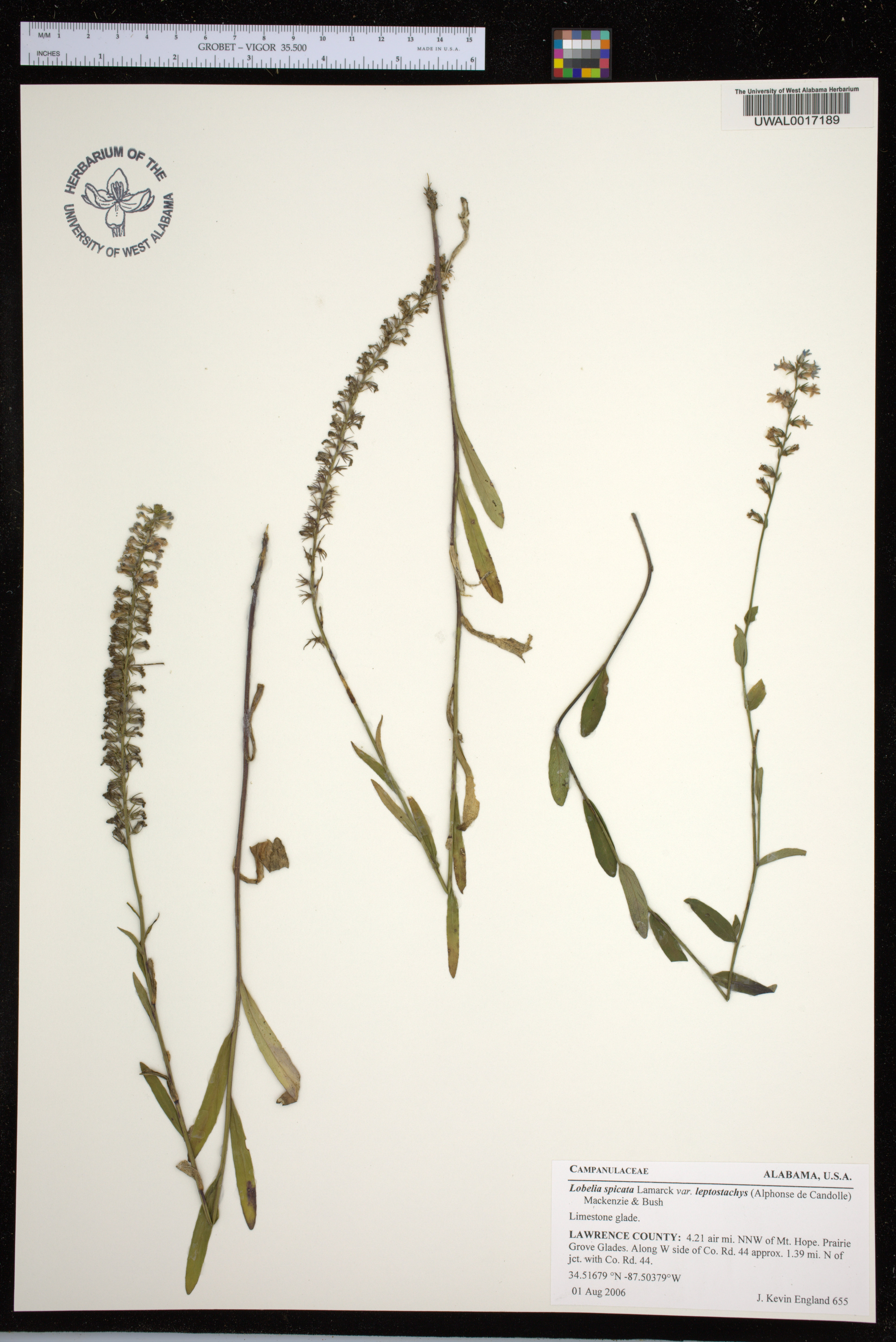 | Currently Accepted Name: | Lobelia spicata Lamarck var. leptostachys (Alphonse de Candolle) Mackenzie & Bush - Determined By: Daniel D. Spaulding |