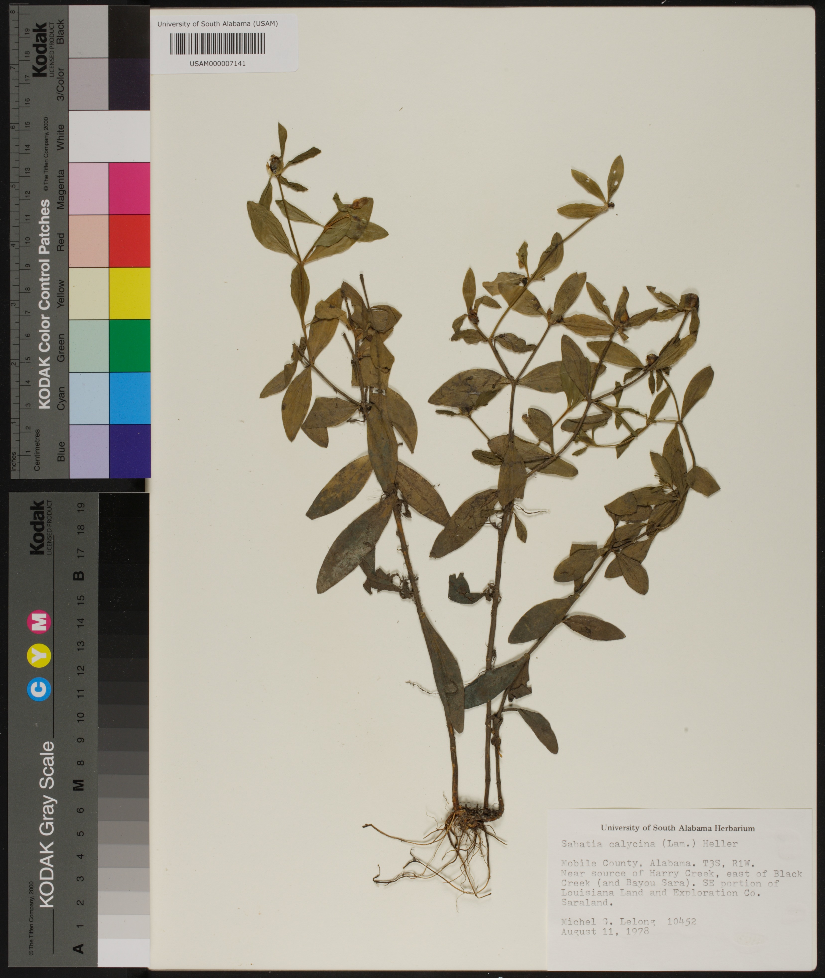 | Herbarium Name Used: | Sabatia calycina (Lam.) A. Heller |