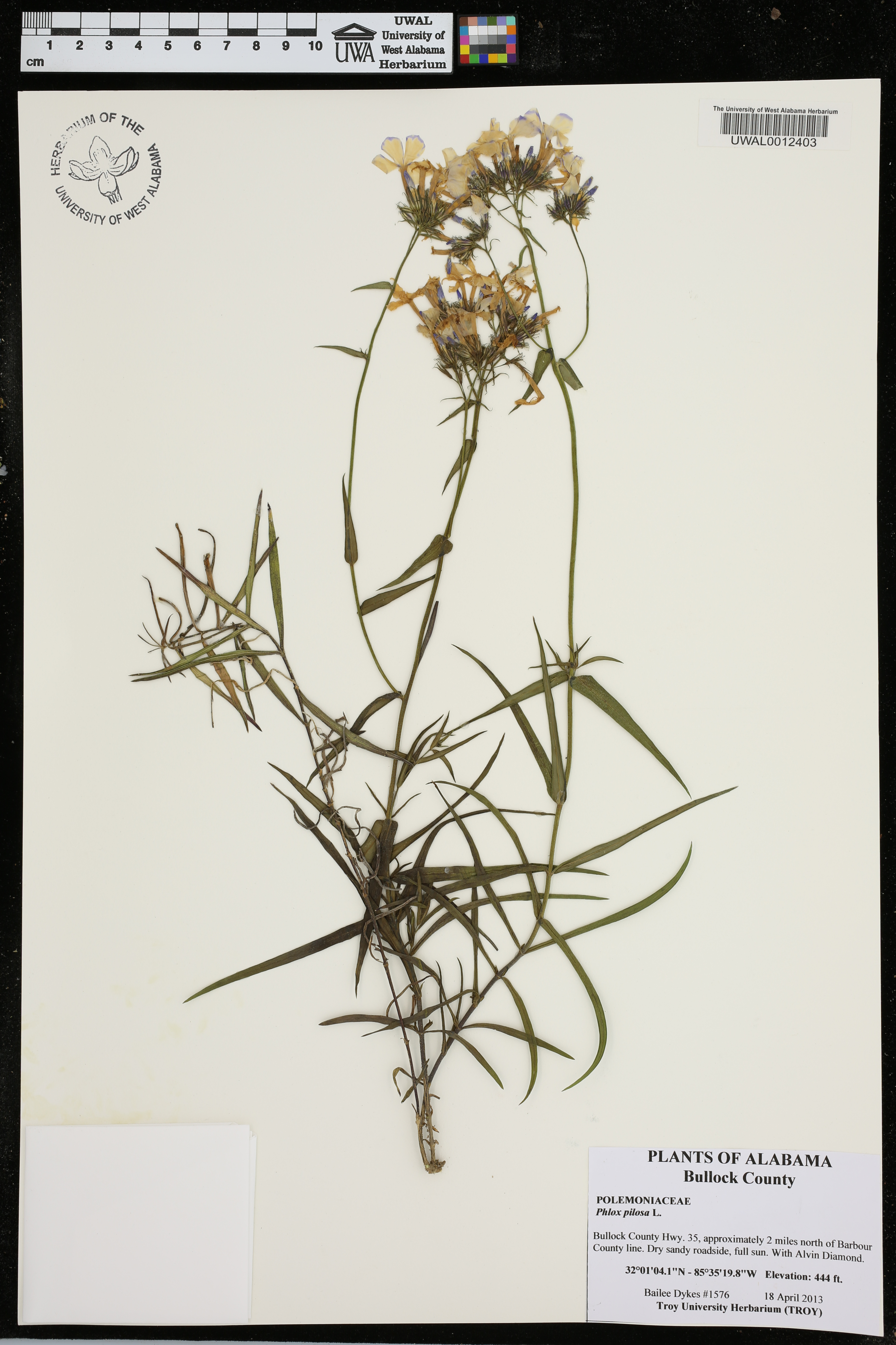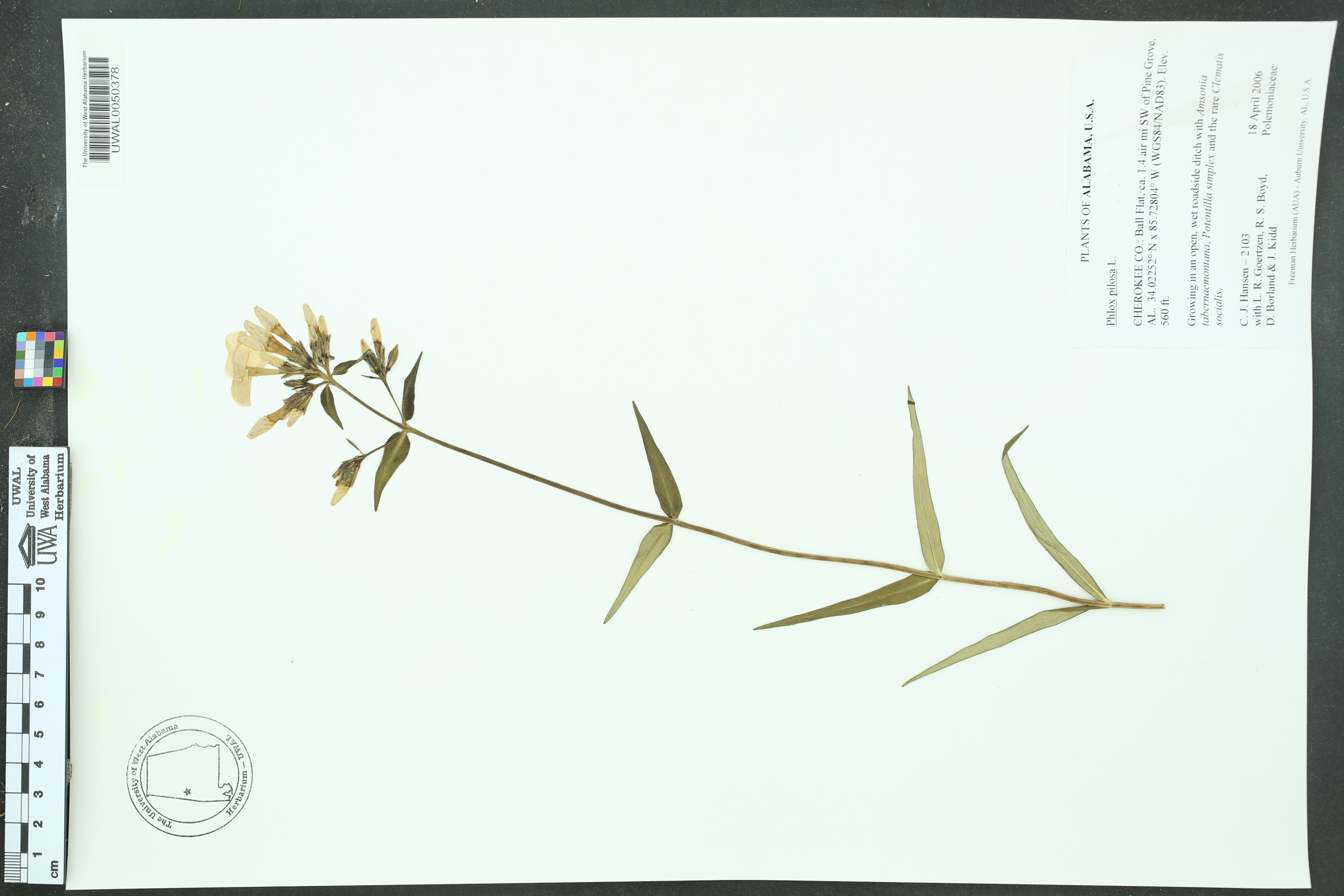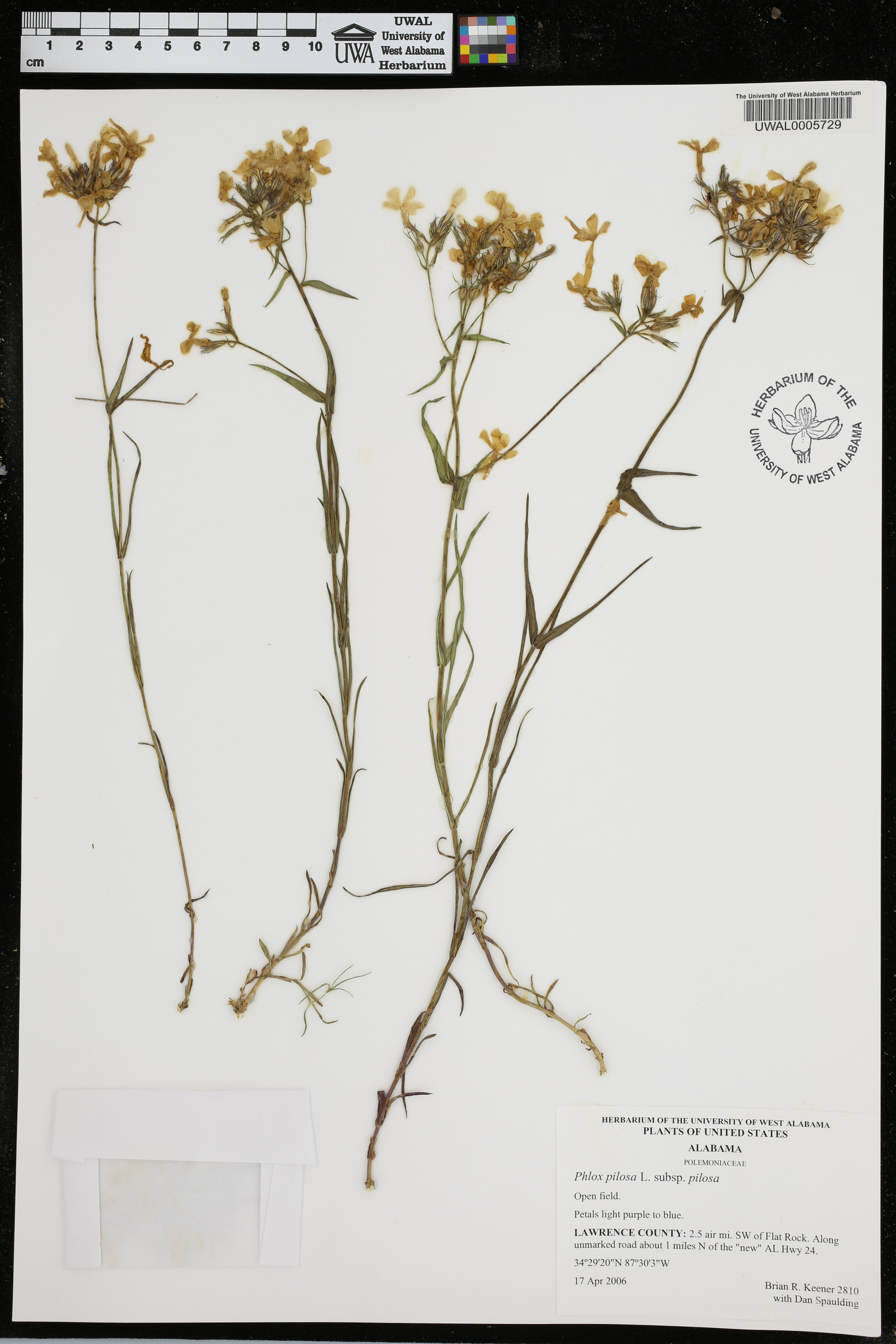 | Herbarium Name Used: | Phlox pilosa Linnaeus ssp. pilosa |