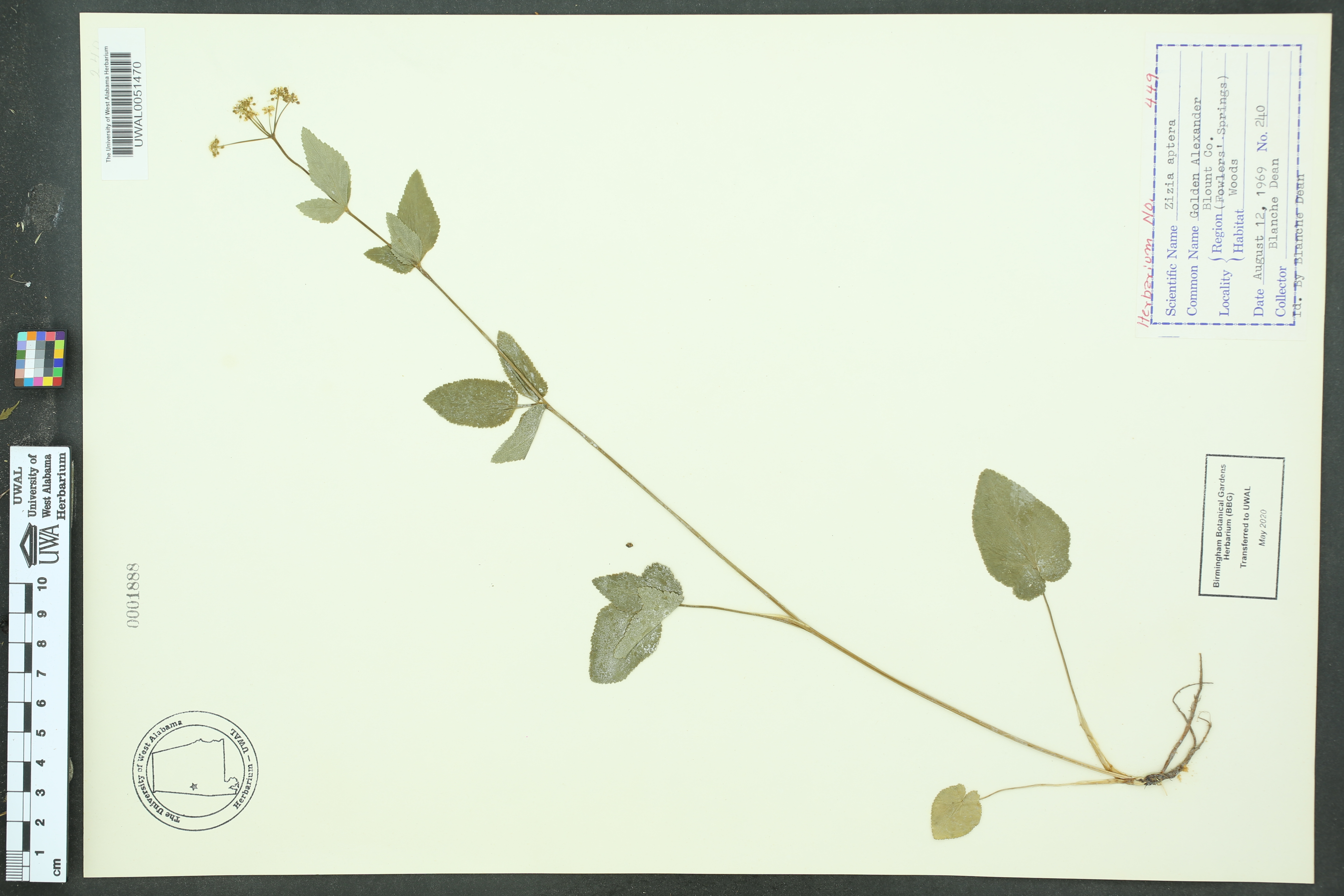 | Herbarium Name Used: | Zizia aptera |