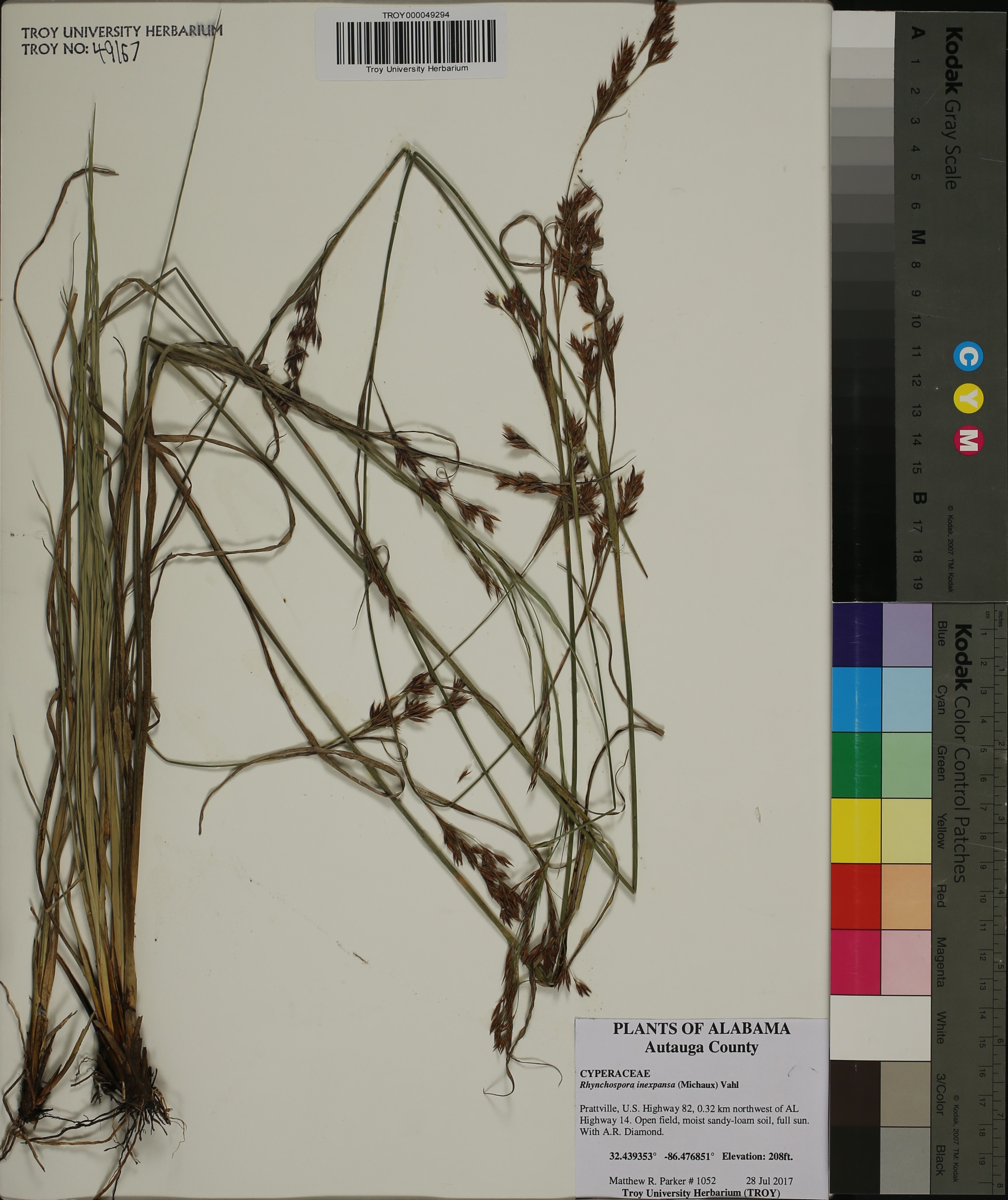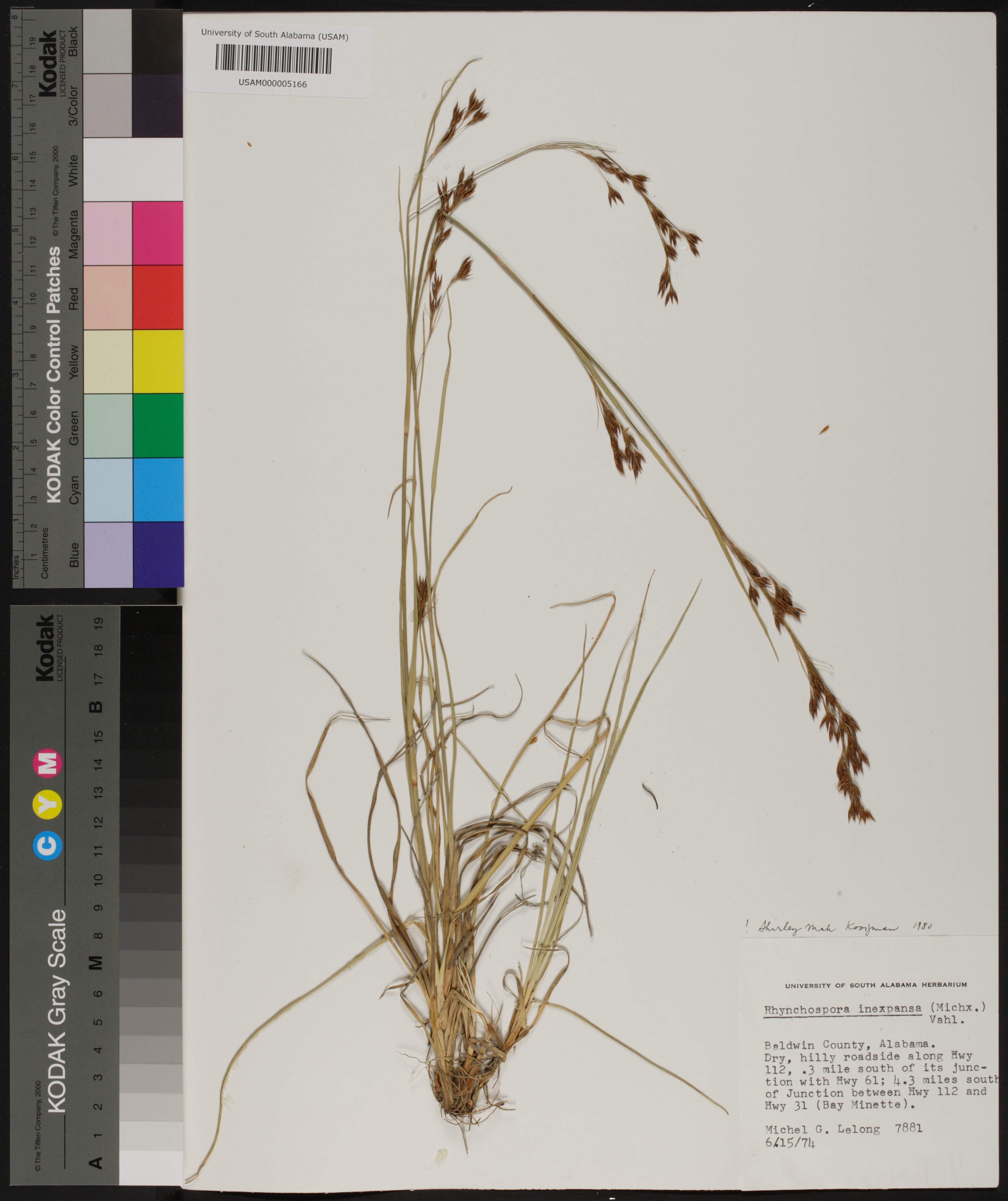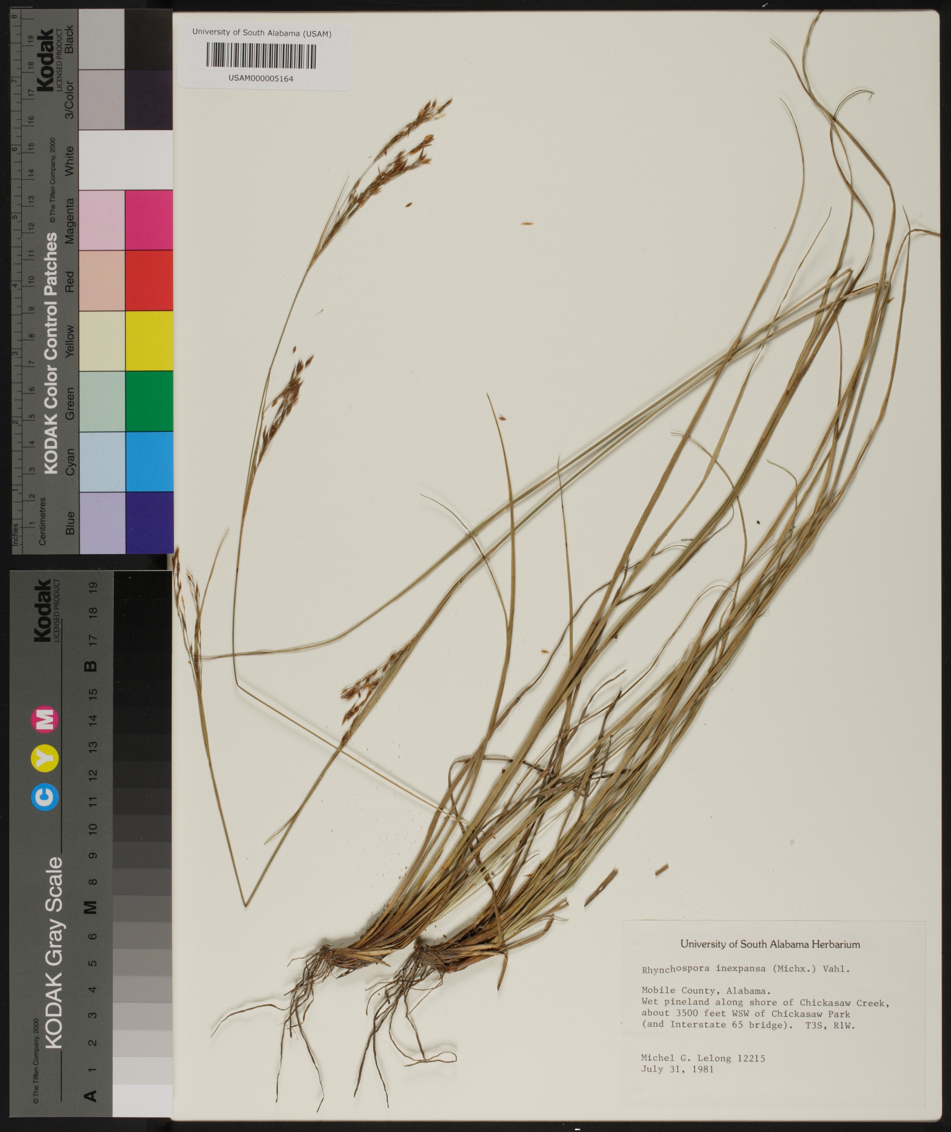 | Herbarium Name Used: | Rhynchospora inexpansa (Michx.) Vahl. |