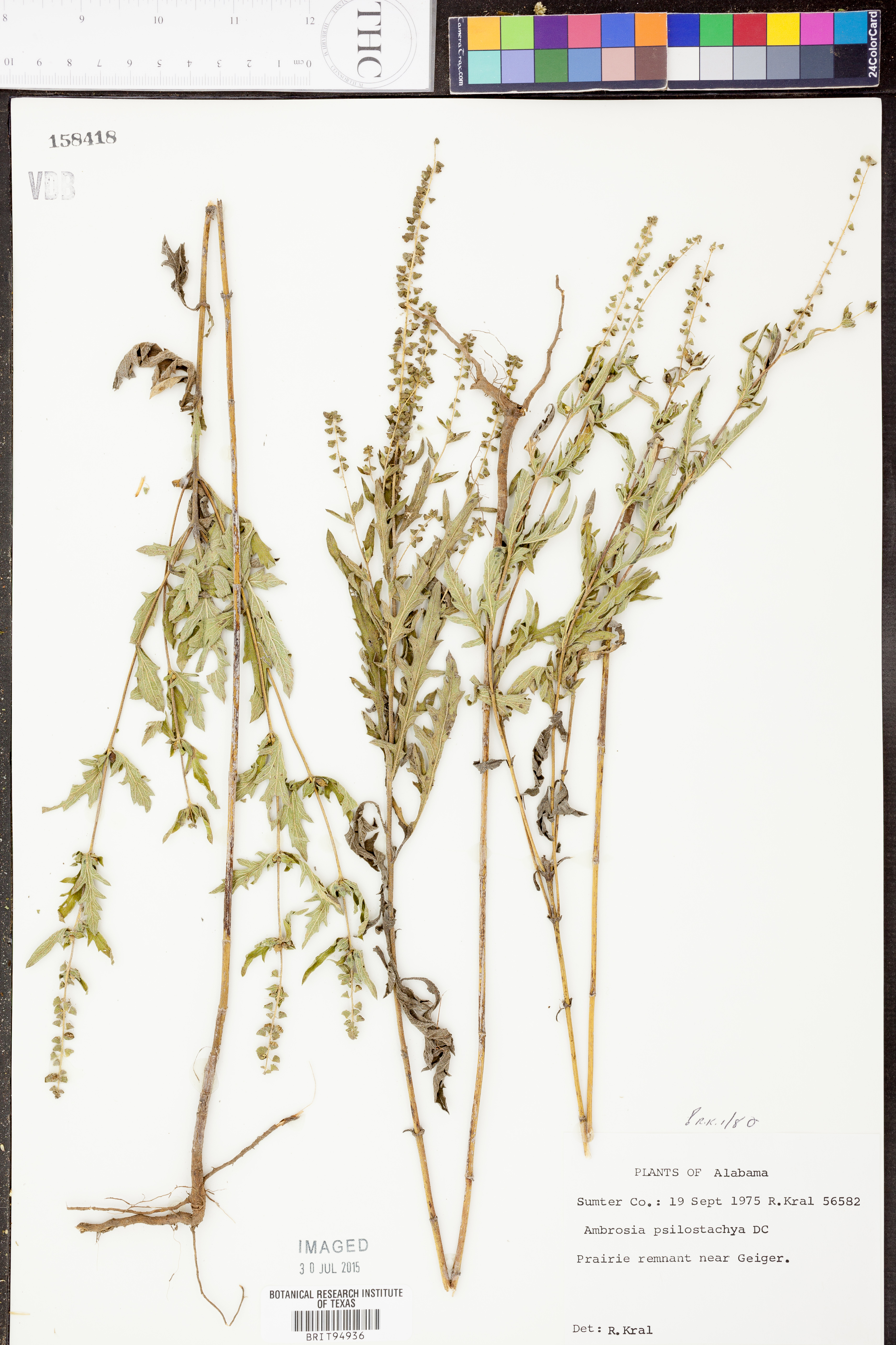 | Herbarium Name Used: | Ambrosia psilostachya A.P. de Candolle |