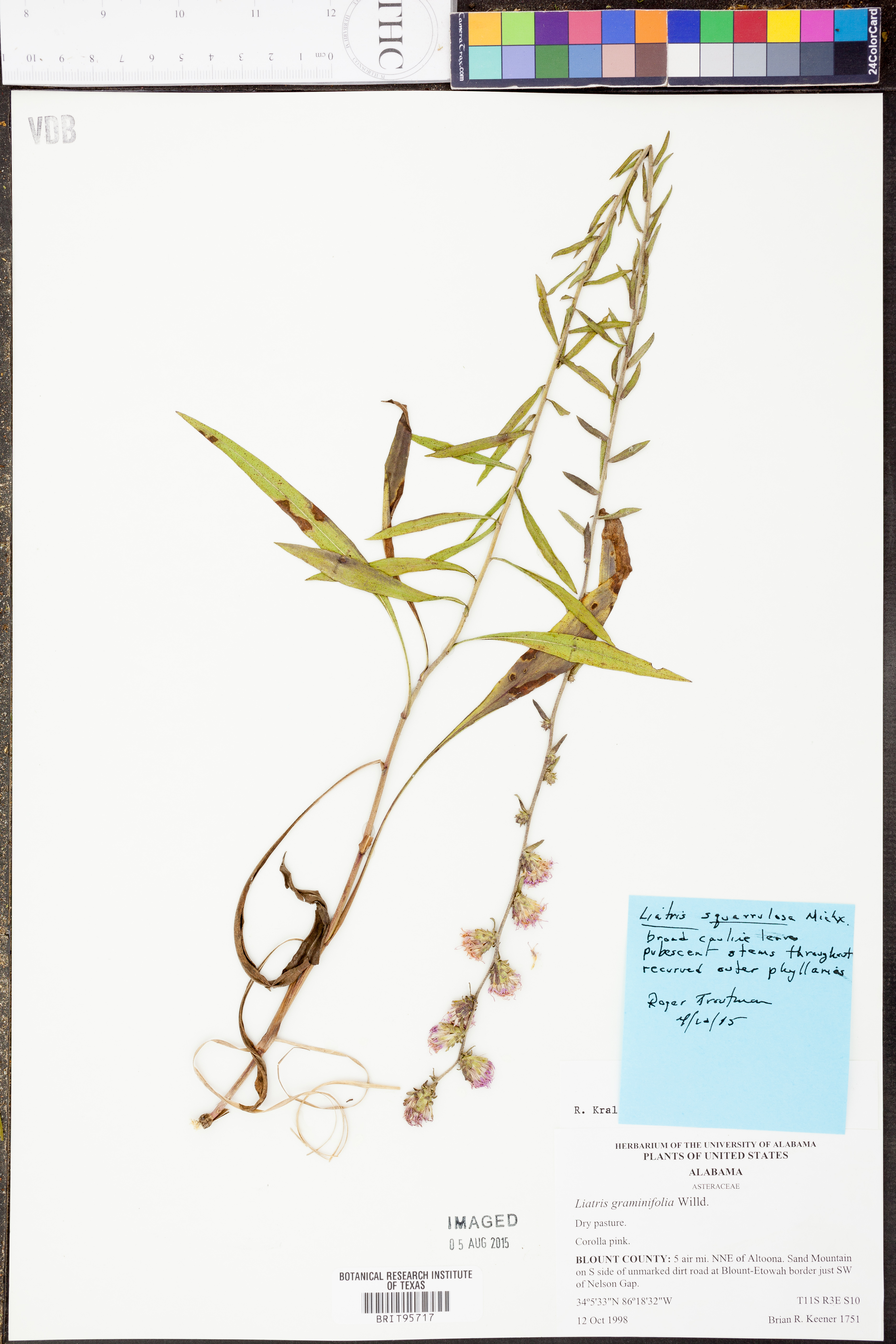 | Herbarium Name Used: | Liatris squarulosa Michx. |