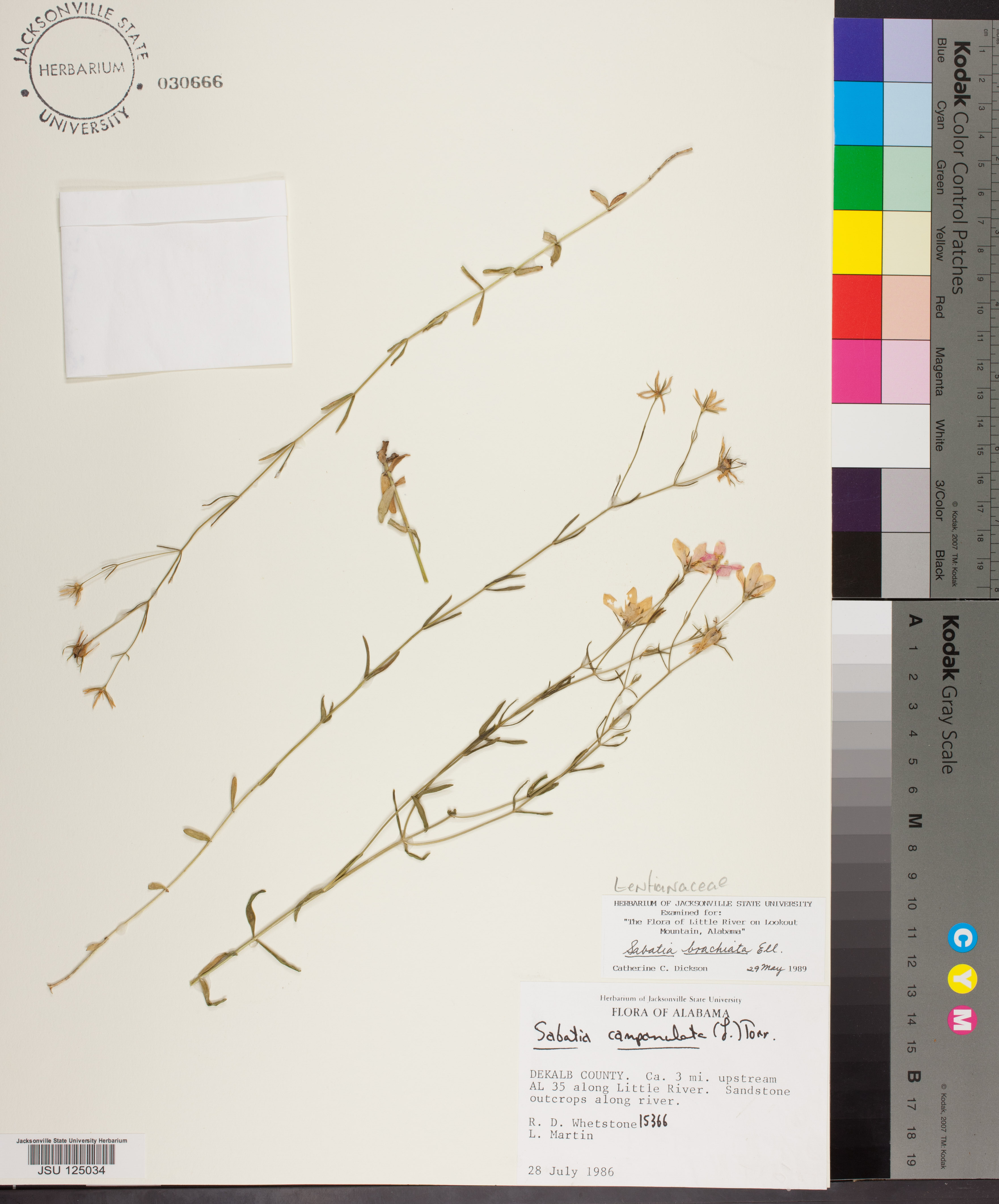 | Herbarium Name Used: | Sabatia brachiata Elliott |