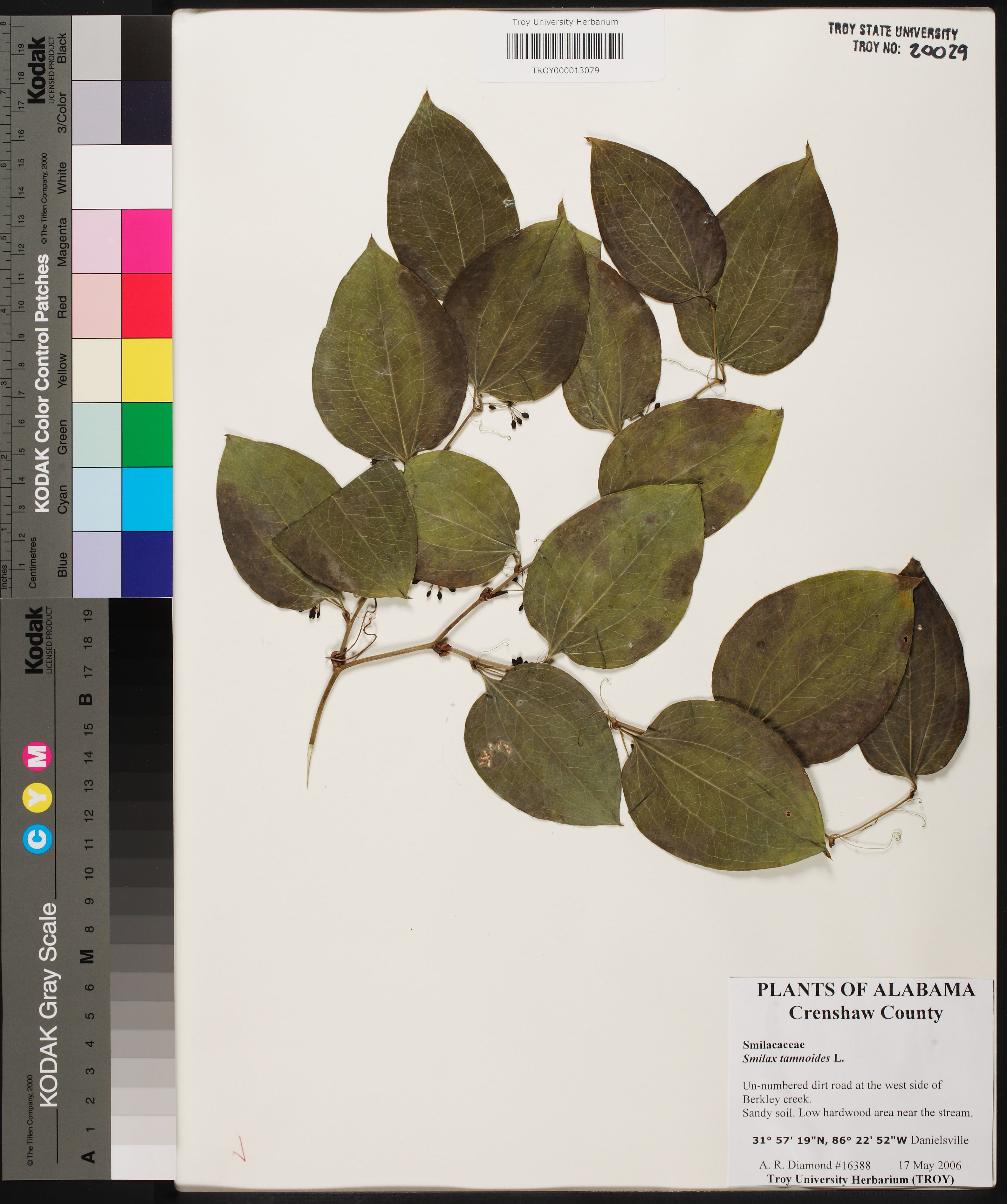 | Herbarium Name Used: | Smilax tamnoides Linnaeus |