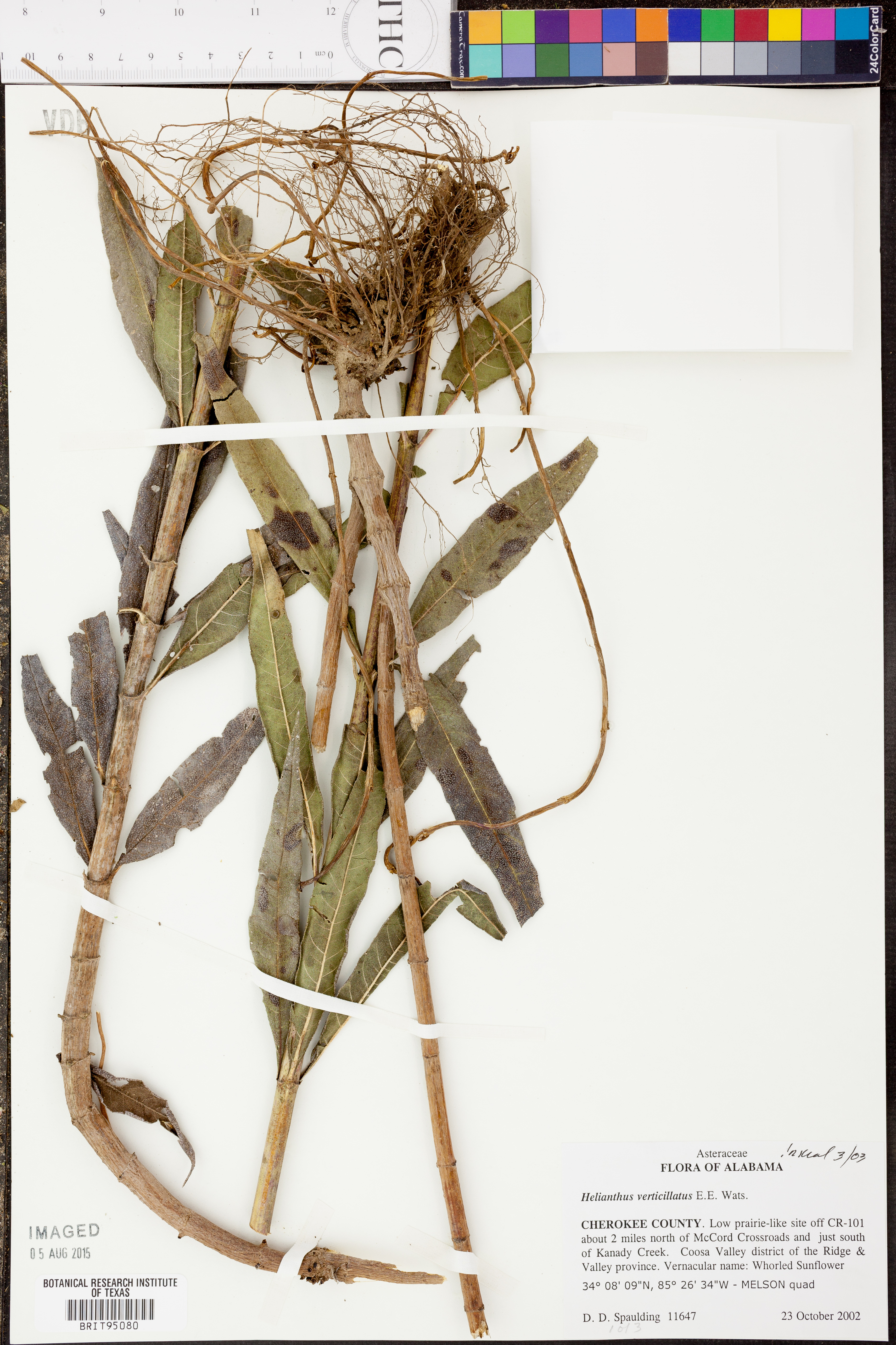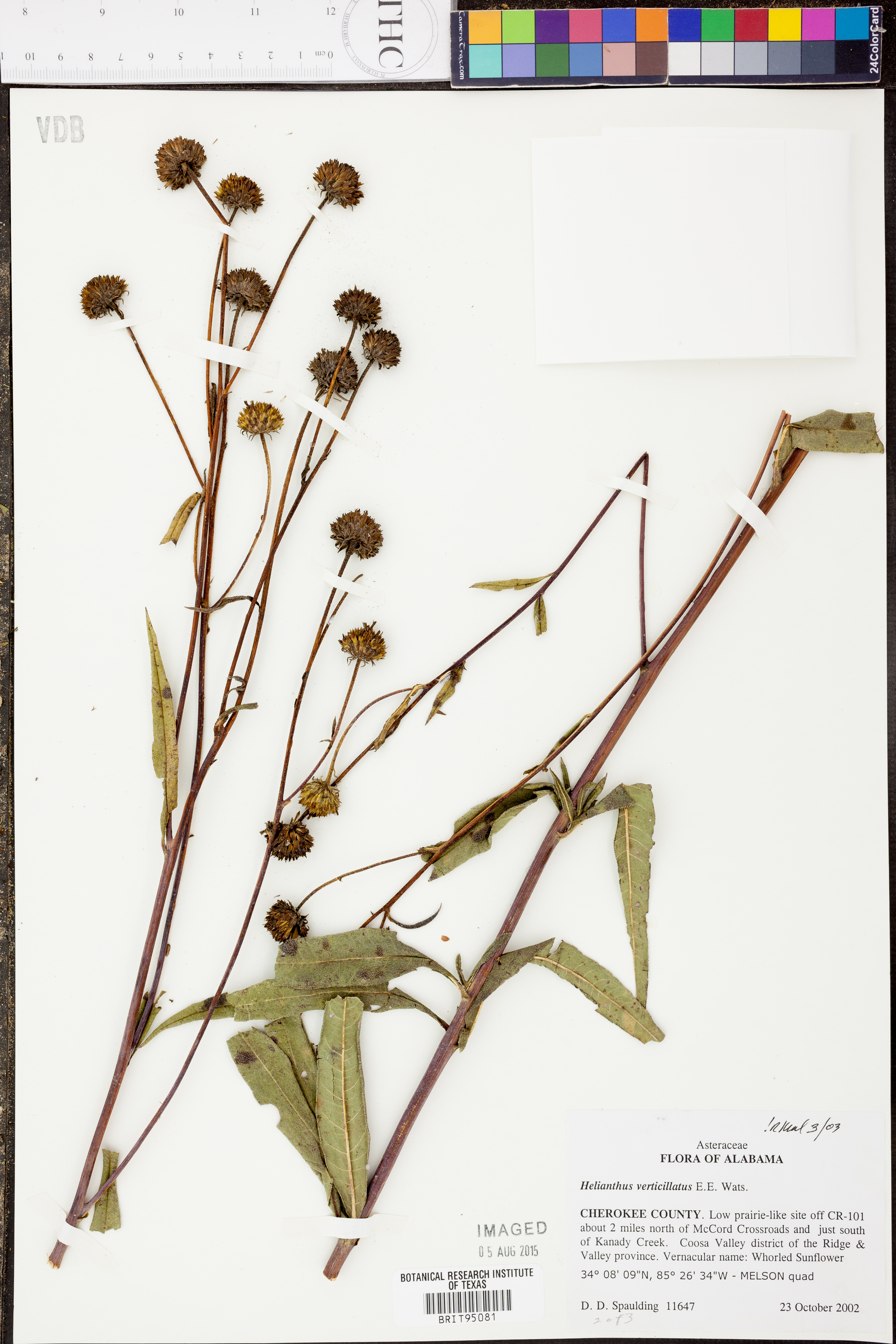 | Herbarium Name Used: | Helianthus verticillatus Small |